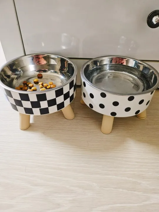 Trendy Branded Patterns: Available in stylish Polka Dot and Checkerboard designs, transforming a simple pet bowl into a high-end home accessory.